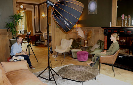 Ik houd het bewust eenvoudig: geen ploeg, geen bombastische opstelling. De camera en microfoon zijn er natuurlijk wél, maar zijn compact, discreet en afgestemd op een ontspannen setting.